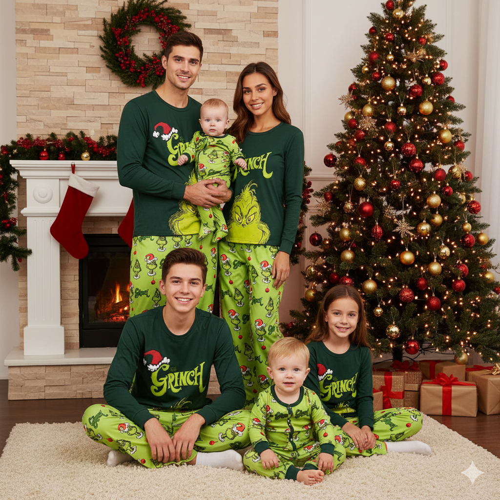 Cute Green Grinch Matching Family Christmas Pajamas