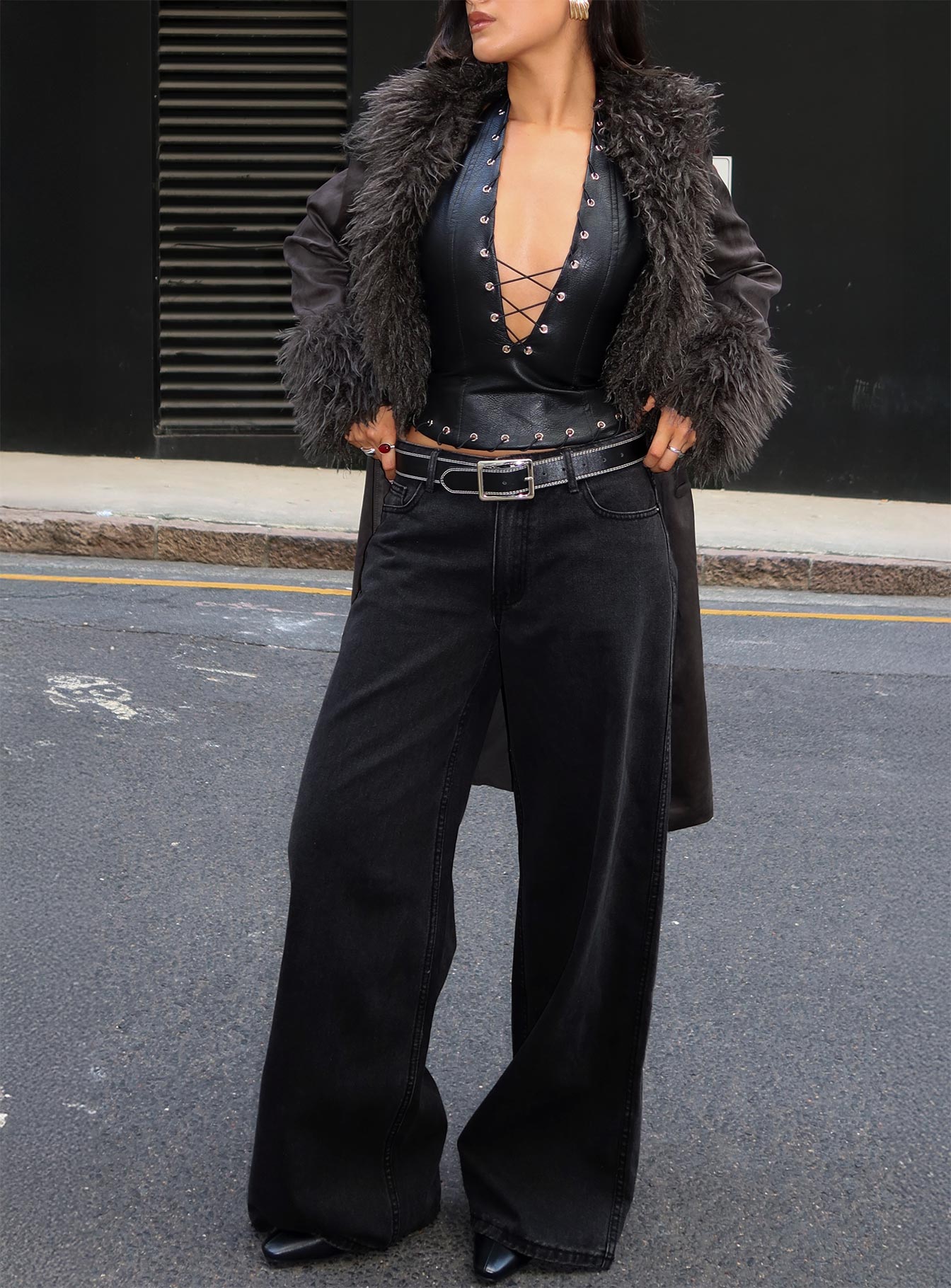 • Washed black, belt looped waist, button & zip closure, five pockets, branded patch at back