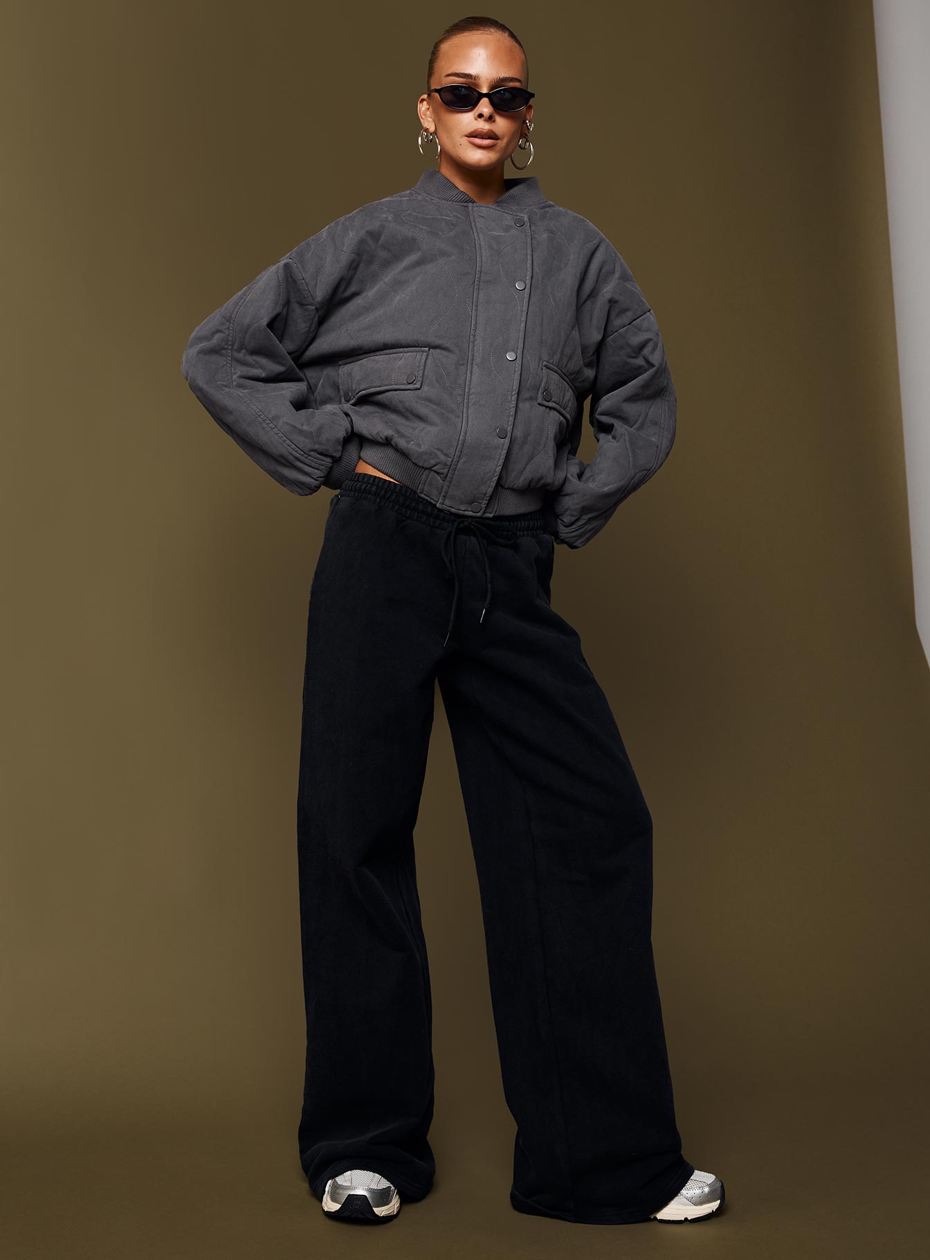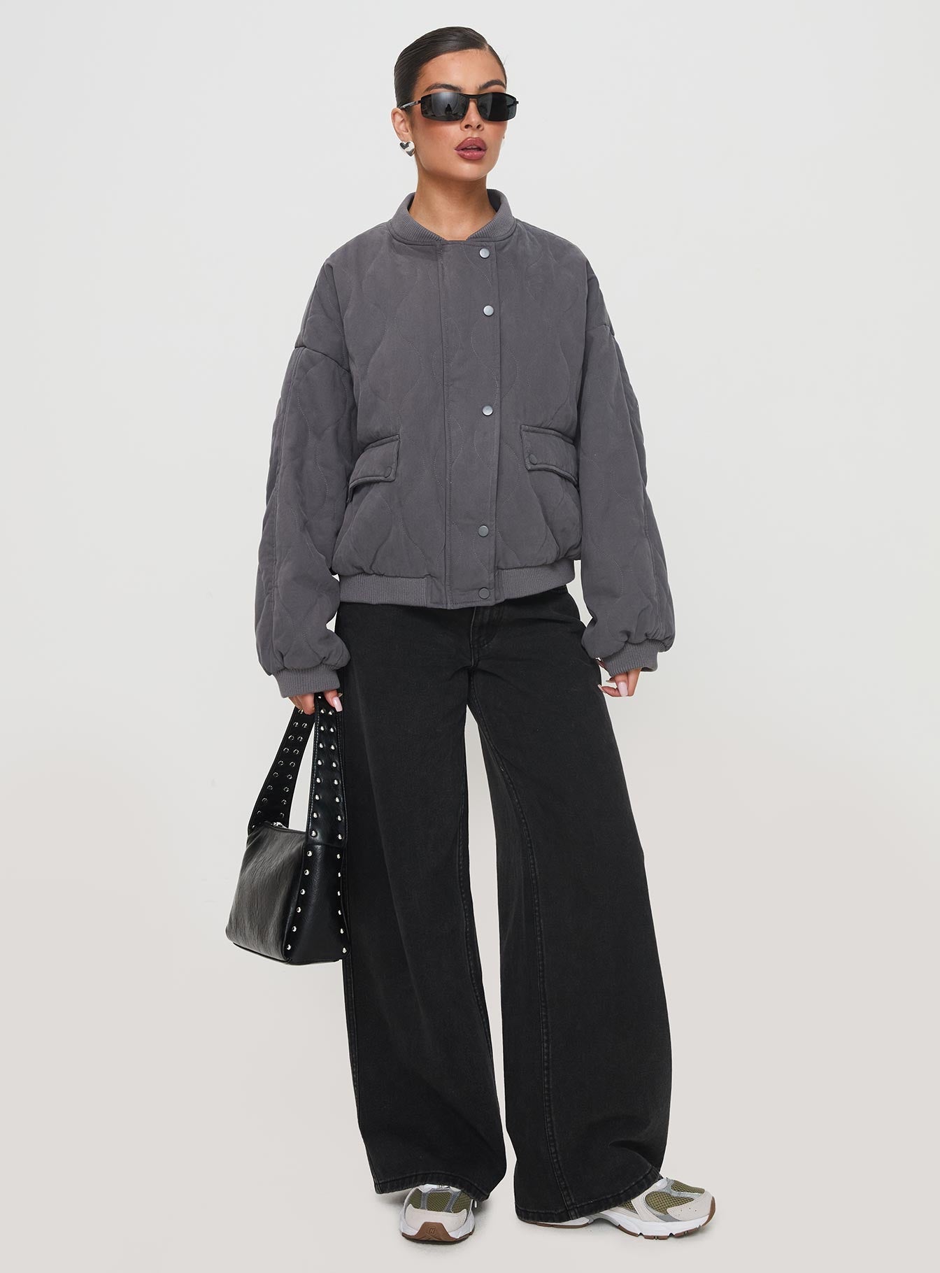 • Ribbed hem detail, button & zip closure, twin front pockets, balloon sleeves, drop shoulders, cuffed